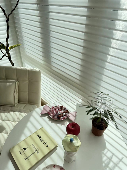 在别墅的客厅或书房中,香格里拉帘以其精致的纹理和半透明的质感,让自然光透过窗帘洒落在米色沙发上,与白色茶几上的黄色书籍相映成趣,营造出一种温馨而宁静的氛围。